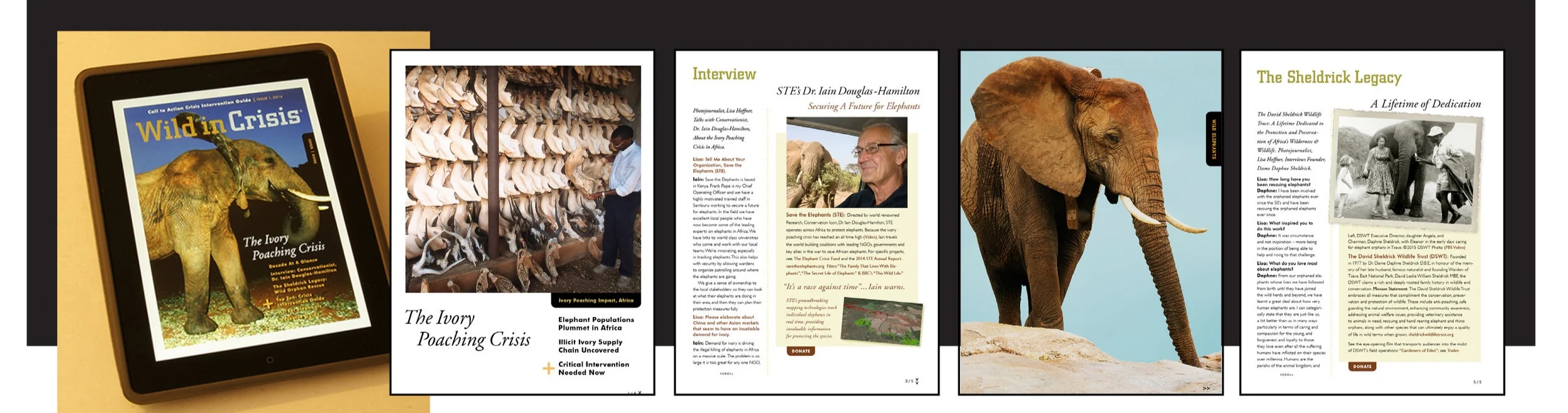 Wild in Crisis Apps provide critical resources to inform the Public about vanishing species and how to take action to save them. Available with a yearly subscription, the magazine style format for tablets provides breaking news, interviews and charity profiles with engaging slide shows, videos, infographics, interactive maps and donation links to inform us about the best wildlife conservation non-profits to support. A scaled down smart phone version of each APP edition provides quick read how-to guides, directories and donation links for more expedient action to address this time sensitive crisis. (APP Specs & Details Click Here).